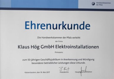 50 Jahre Goldener Meisterbrief und 50 Jahre Elektro Hög - Elektro Hög
